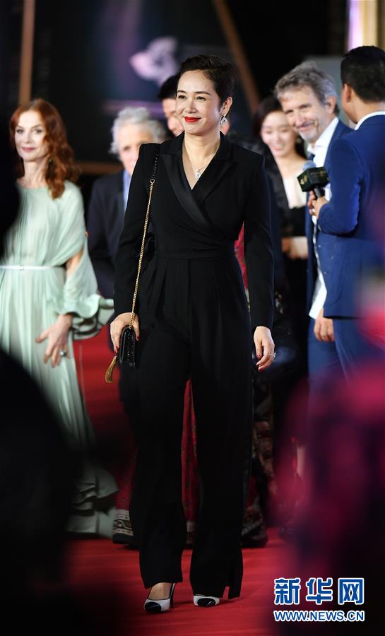 12月1日,法國演員伊莎貝爾·于佩爾亮相電影節(jié)紅毯儀式。 當(dāng)日,第二屆海南島國際電影節(jié)在三亞開幕。 新華社記者 郭程 攝