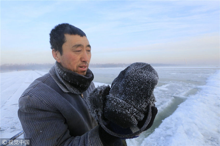 實(shí)拍松花江上的纖夫采冰者工作20天收入近萬元