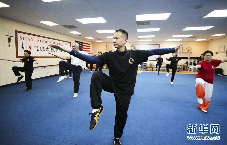陳思坦在位于美國(guó)紐約長(zhǎng)島的思坦太極武術(shù)中心帶學(xué)員練習(xí)太極拳(11月20日攝)。11月的紐約已進(jìn)入初冬,位于美國(guó)紐約長(zhǎng)島的思坦太極武術(shù)中心依然一片紅火景象,學(xué)員們從5歲的孩童到80多歲的老人,操練著太極拳、太極劍、長(zhǎng)拳等武術(shù)招式。這里的主人陳思坦、林旭夫婦,也從早忙到晚,精心指導(dǎo)每一位學(xué)員的一招一式。6歲習(xí)武,22歲成為中國(guó)全國(guó)冠軍,26歲獲得首個(gè)世界冠軍……直到30歲退役,陳思坦在運(yùn)動(dòng)員生涯中曾獲得過(guò)32次國(guó)內(nèi)外各類武術(shù)大賽冠軍。36歲那年,懷著以太極拳和中國(guó)武術(shù)為媒介向世界推廣中國(guó)文化的夢(mèng)想,陳思坦到美國(guó)紐約尋找新的舞臺(tái)。經(jīng)過(guò)十多年的艱苦打拼,陳思坦夫婦目前在紐約長(zhǎng)島、法拉盛和曼哈頓都開(kāi)設(shè)了長(zhǎng)期的課程,思坦太極注冊(cè)在編的各個(gè)年齡段的學(xué)員近千人,有些“高徒”現(xiàn)在自己也開(kāi)班授課,將太極推向更多地方。陳思坦夫婦現(xiàn)在思考更多的是如何將太極和武術(shù)推廣給更多的美國(guó)人,并讓他們理解其中蘊(yùn)含的平衡、和諧的中國(guó)文化理念。他們創(chuàng)辦了紐約太極健身氣功活動(dòng)日,在各類學(xué)校和社區(qū)開(kāi)設(shè)太極或者武術(shù)課程,并利用美國(guó)的亞太裔文化月和多元文化節(jié)舉行武術(shù)和太極表演和體驗(yàn)課程,讓更多美國(guó)人親眼看到、親身體會(huì)中國(guó)武術(shù)的魅力。從2011年起,他們還參與創(chuàng)辦了紐約太極大賽,如今已舉行九屆,吸引了美國(guó)、加拿大和中國(guó)國(guó)內(nèi)的隊(duì)伍參賽,影響力逐漸擴(kuò)大。新華社記者王迎攝