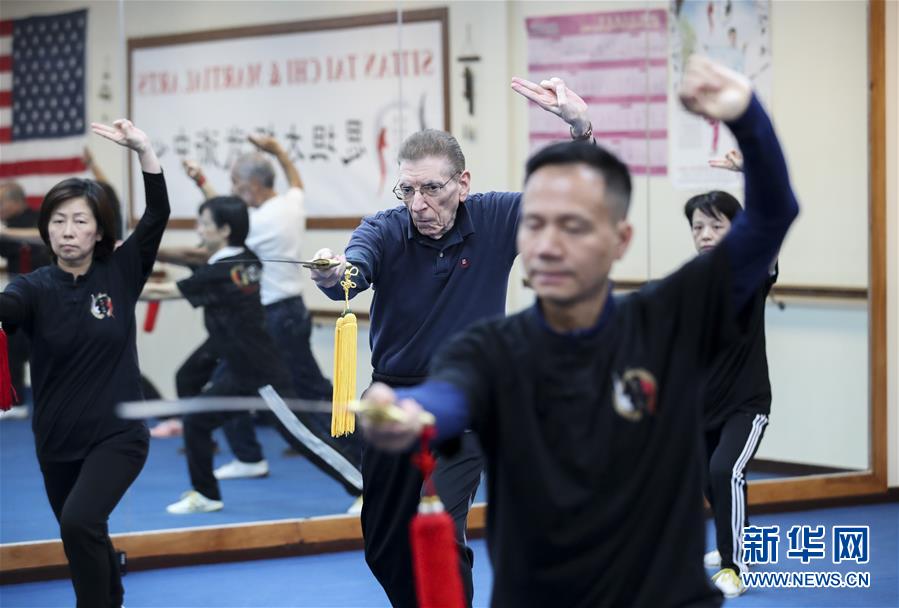 陳思坦在位于美國紐約長島的思坦太極武術(shù)中心帶學員練習太極劍(11月20日攝)。11月的紐約已進入初冬,位于美國紐約長島的思坦太極武術(shù)中心依然一片紅火景象,學員們從5歲的孩童到80多歲的老人,操練著太極拳、太極劍、長拳等武術(shù)招式。這里的主人陳思坦、林旭夫婦,也從早忙到晚,精心指導每一位學員的一招一式。6歲習武,22歲成為中國全國冠軍,26歲獲得首個世界冠軍……直到30歲退役,陳思坦在運動員生涯中曾獲得過32次國內(nèi)外各類武術(shù)大賽冠軍。36歲那年,懷著以太極拳和中國武術(shù)為媒介向世界推廣中國文化的夢想,陳思坦到美國紐約尋找新的舞臺。經(jīng)過十多年的艱苦打拼,陳思坦夫婦目前在紐約長島、法拉盛和曼哈頓都開設(shè)了長期的課程,思坦太極注冊在編的各個年齡段的學員近千人,有些“高徒”現(xiàn)在自己也開班授課,將太極推向更多地方。陳思坦夫婦現(xiàn)在思考更多的是如何將太極和武術(shù)推廣給更多的美國人,并讓他們理解其中蘊含的平衡、和諧的中國文化理念。他們創(chuàng)辦了紐約太極健身氣功活動日,在各類學校和社區(qū)開設(shè)太極或者武術(shù)課程,并利用美國的亞太裔文化月和多元文化節(jié)舉行武術(shù)和太極表演和體驗課程,讓更多美國人親眼看到、親身體會中國武術(shù)的魅力。從2011年起,他們還參與創(chuàng)辦了紐約太極大賽,如今已舉行九屆,吸引了美國、加拿大和中國國內(nèi)的隊伍參賽,影響力逐漸擴大。新華社記者王迎攝