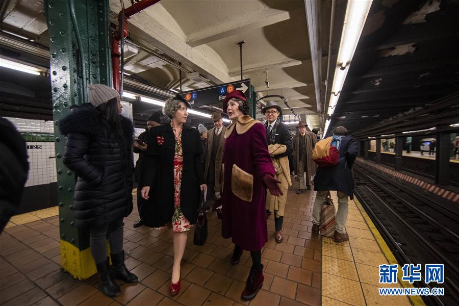 12月8日,在美國紐約,人們搭乘“懷舊專列”后準(zhǔn)備離開。每年感恩節(jié)到新年之間的星期日,紐約地鐵都會用1932年至1977年間使用的老式列車在運營的線路上開行特別的“懷舊專列”,人們穿戴舊時服飾專程前來搭乘,體驗時光回溯的奇妙旅程。新華社記者王迎攝