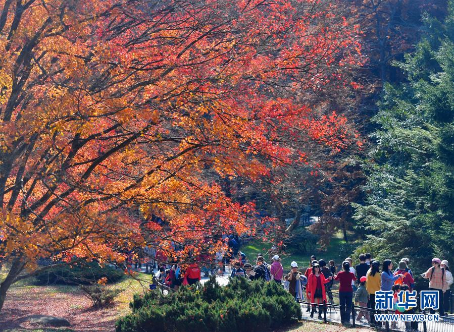 11月17日,游客在廬山植物園內(nèi)游玩。新華社記者胡晨歡攝