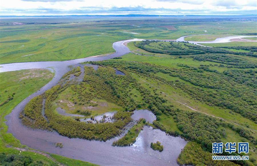8月26日無人機拍攝的伊敏河。伊敏河流經呼倫貝爾草原。新華社記者彭源攝