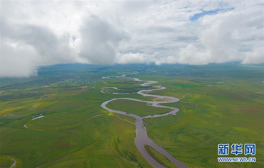 8月26日無人機拍攝的伊敏河。伊敏河流經(jīng)呼倫貝爾草原。新華社記者彭源攝