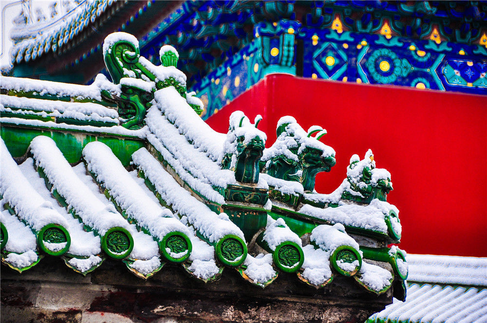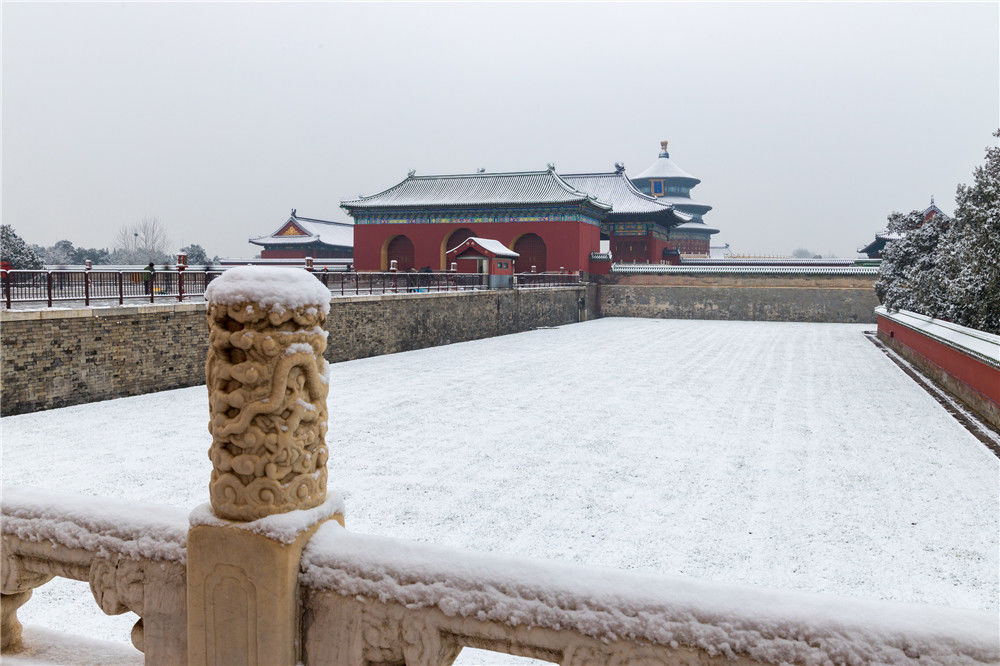 2019年11月30日,北京,初雪過后,天壇公園銀裝素裹,白雪古建相互映襯,景色迷人。時永平/千龍圖像/視覺中國