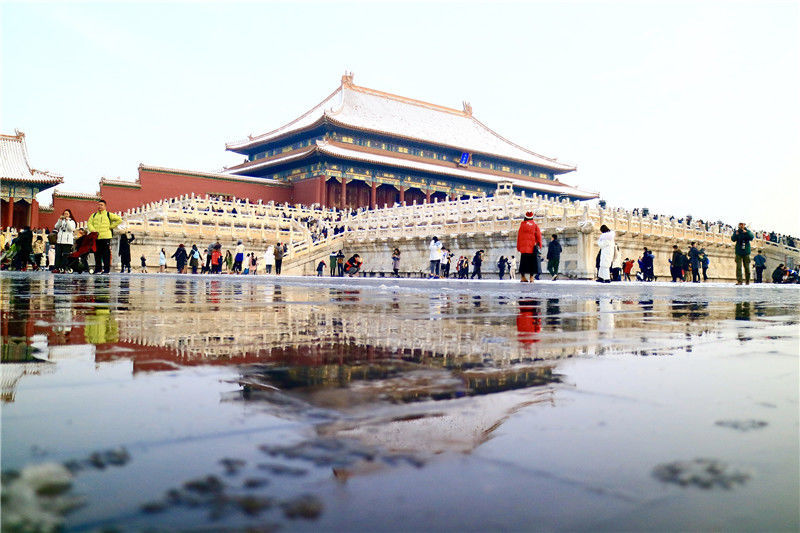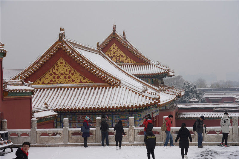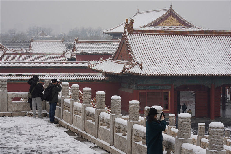 初雪后故宮銀裝素裹游客排隊打卡