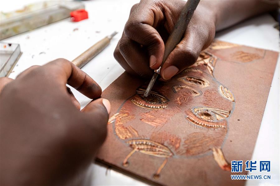 12月20日,在肯尼亞內(nèi)羅畢庫(kù)奧納藝術(shù)中心,一名藝術(shù)家在工作室內(nèi)創(chuàng)作作品。 新華社記者 王騰 攝