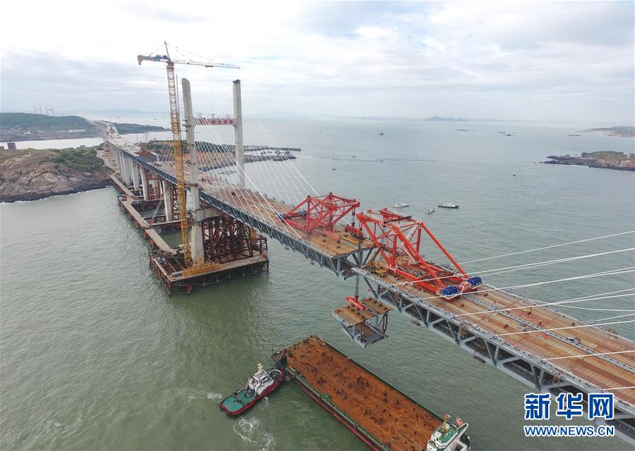 9月21日,平潭海峽公鐵大橋鼓嶼門航道橋的鋼桁梁在吊裝中(無人機拍攝)。9月25日上午,隨著一段長17米、重473噸的鋼桁梁被精確固定到位,總長16.34公里的平潭海峽公鐵大橋合龍貫通。平潭海峽公鐵大橋是福州至平潭鐵路控制性工程,也是“十三五”規(guī)劃中北京至臺灣高鐵的先期工程。大橋起于福州市長樂區(qū),“踏”過四座小島后抵達(dá)中國第五大島平潭,上層設(shè)計為時速100公里的六車道高速公路,下層為設(shè)計時速200公里的高鐵。據(jù)福建福平鐵路公司介紹,大橋計劃2020年正式通車。在六年建設(shè)過程中,平潭海峽公鐵大橋所應(yīng)用研發(fā)的多項技術(shù)、裝備創(chuàng)下國內(nèi)外紀(jì)錄。新華社記者林善傳攝