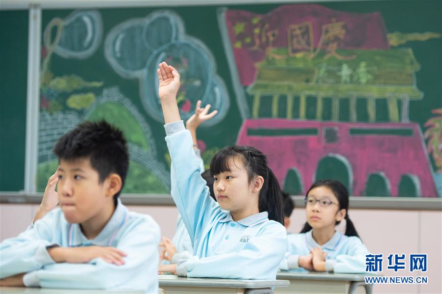 11月25日,喻彥茜(中)在課堂上舉手回答老師提問。