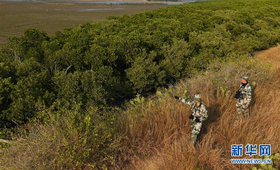 海南儋州新英灣紅樹(shù)林市級(jí)自然保護(hù)區(qū)護(hù)林員陳正平(前)和同伴巡護(hù)保護(hù)區(qū)內(nèi)的紅樹(shù)林(12月9日攝)。陳正平2010年開(kāi)始在保護(hù)區(qū)工作,他將工作發(fā)展成愛(ài)好,廣泛參加各種培訓(xùn)和業(yè)內(nèi)交流。他在工作中拍到瀕危鳥(niǎo)類白肩雕出現(xiàn)在海南的照片,這刷新了海南省的鳥(niǎo)種記錄。新華社記者楊冠宇攝