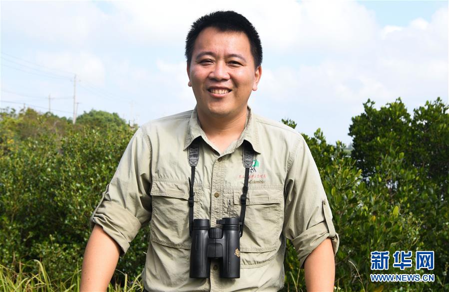 海南東寨港國家級自然保護(hù)區(qū)林業(yè)工程師馮爾輝(12月18日攝)。 馮爾輝2009年大學(xué)畢業(yè)后來到保護(hù)區(qū)工作,小時候他家就住在紅樹林邊上,他從小和紅樹林打交道,喜歡動植物和鳥類。外貿(mào)專業(yè)畢業(yè)的他邊工作邊學(xué)習(xí),目前主要從事鳥類監(jiān)測、紅樹林保育、自然教育等工作?!凹t樹林看著我長大”,馮爾輝說,濕地保護(hù)的工作非常有意義。 新華社記者楊冠宇攝