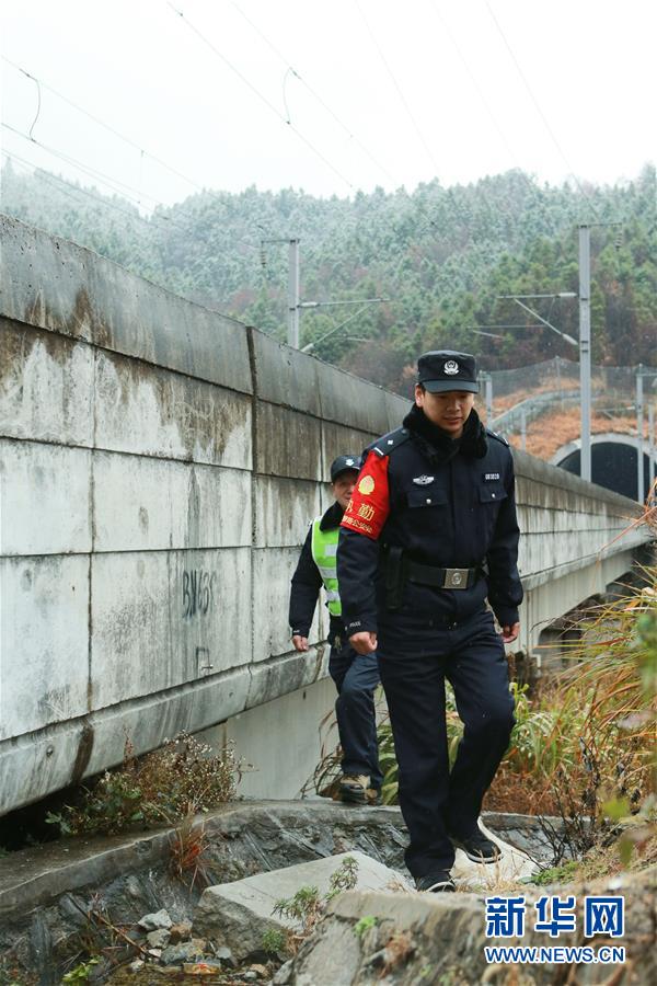 金寨火車站派出所民警張嗣一在站臺(tái)接車(12月19日攝)。安徽合肥鐵路公安處金寨火車站派出所位于大別山腹地。在這里,除了所領(lǐng)導(dǎo)外,青年民警平均年齡不到29歲。他們遠(yuǎn)離家鄉(xiāng),扎根大山深處的小站派出所,戰(zhàn)斗在守護(hù)客運(yùn)平安的第一線。新華社記者張端攝