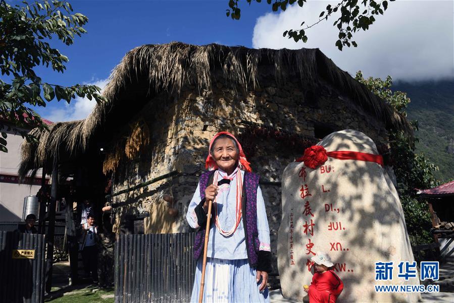 11月2日,云南福貢縣鹿馬登鄉(xiāng)干布村的一位傈僳族老人在村民以前居住的茅草房前。新華社記者楊宗友攝
