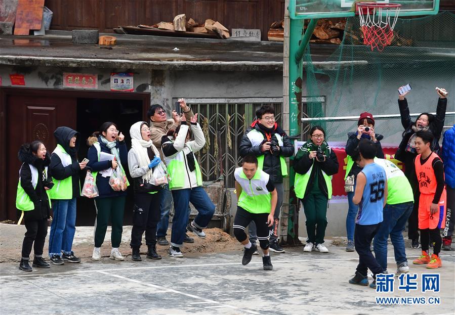 12月26日,澳門青年藝能志愿工作會(huì)的義教老師們?cè)跒跤⒚缯^看籃球比賽。 新華社記者 黃孝邦 攝