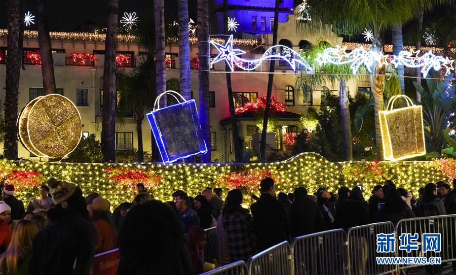 12月29日,人們?cè)诿绹?guó)加利福尼亞州里弗賽德燈光節(jié)上欣賞彩燈。  新華社記者李穎攝