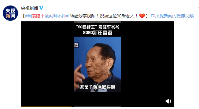 深圳新聞網訊 近日,央視新聞在其官方平臺下曬出一段袁隆平受采訪的視頻。值此2020年即將來臨之際,袁隆平先生在視頻中為年輕人們送來了新年寄語,“首先注意身體,這是基礎,我年輕時候喜歡鍛煉,我是個游泳健將啊,游泳年輕的時候是武漢市第一名啊”,并且在視頻中回答了一個記者的問題,俘獲了無數(shù)網友的內心。