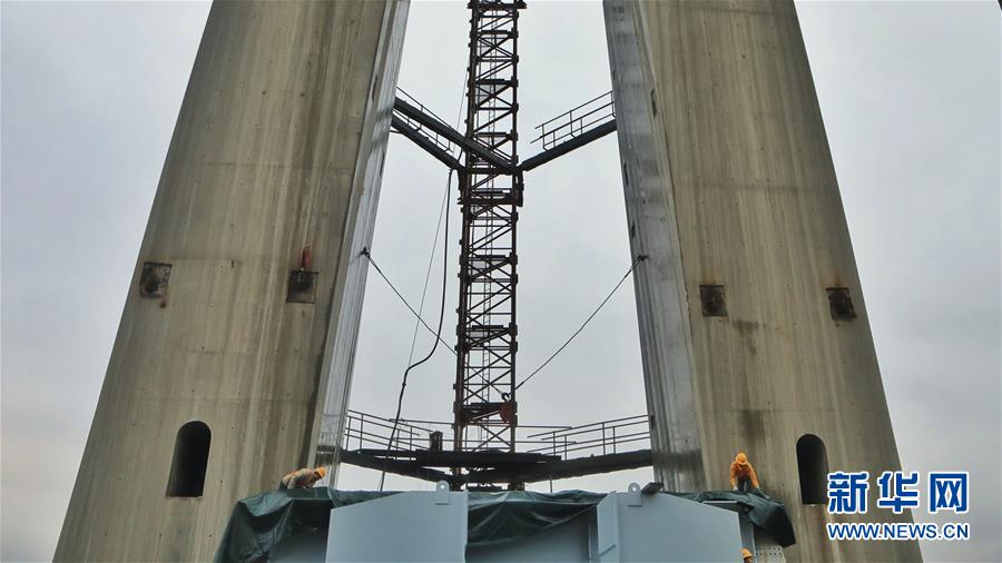 2019年1月7日,建設(shè)者在世界第一高混凝土橋塔上建設(shè)平塘特大橋。新華社記者歐東衢攝