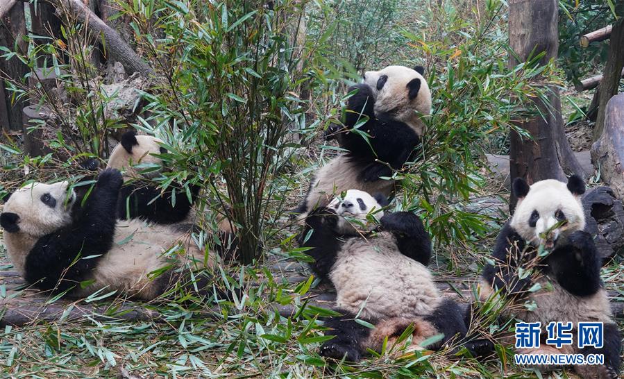 這是1月1日在成都大熊貓繁育研究基地拍攝的大熊貓。  新華社發(fā)(陳居偉 攝)