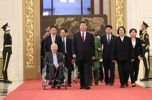 2019年9月29日,中華人民共和國(guó)國(guó)家勛章和國(guó)家榮譽(yù)稱(chēng)號(hào)頒授儀式在北京人民大會(huì)堂金色大廳隆重舉行。中共中央總書(shū)記、國(guó)家主席、中央軍委主席習(xí)近平同國(guó)家勛章和國(guó)家榮譽(yù)稱(chēng)號(hào)獲得者一同步入會(huì)場(chǎng)。新華社記者丁海濤攝