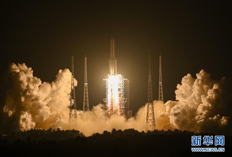2019年12月27日20時45分,長征五號遙三運(yùn)載火箭在中國文昌航天發(fā)射場點(diǎn)火升空。 新華社記者陳曄華攝