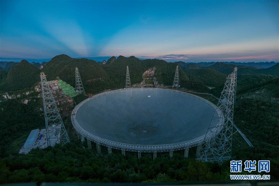 8月27日拍攝的落日余暉中的“中國(guó)天眼”。新華社記者歐東衢攝