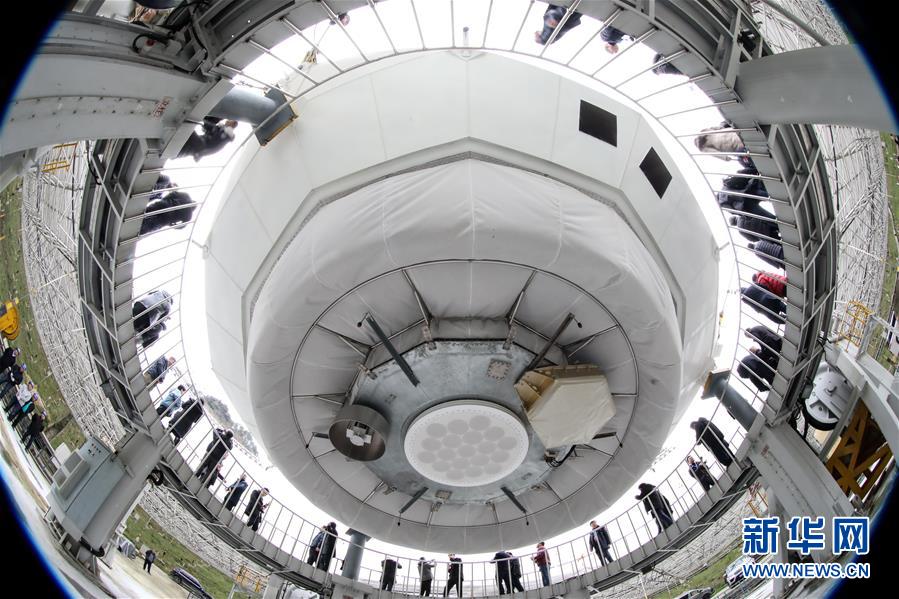 1月11日,專家學(xué)者對(duì)“中國(guó)天眼”進(jìn)行考察(檢修期間拍攝)。新華社記者劉續(xù)攝