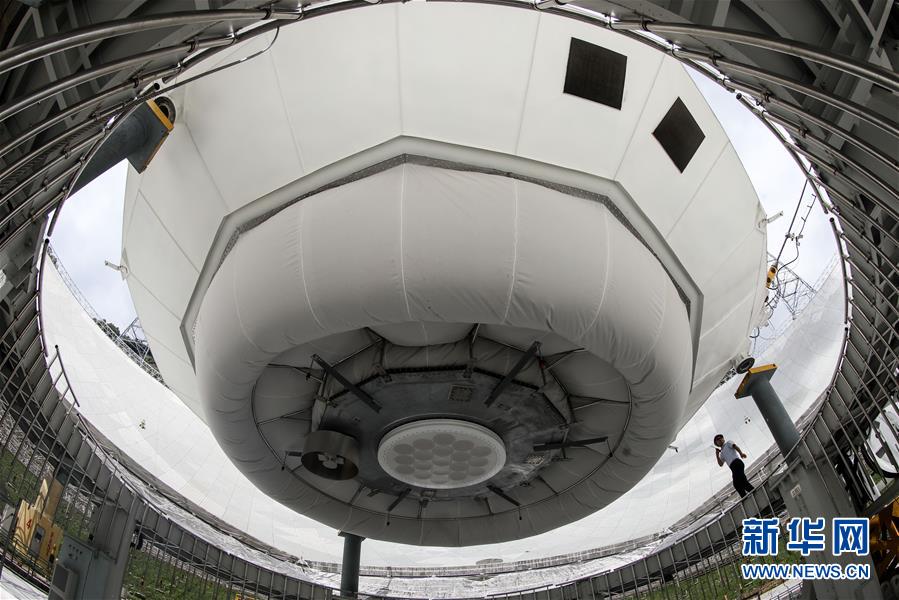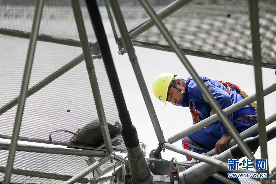 8月28日,工作人員在“中國(guó)天眼”內(nèi)進(jìn)行檢修。新華社記者歐東衢攝