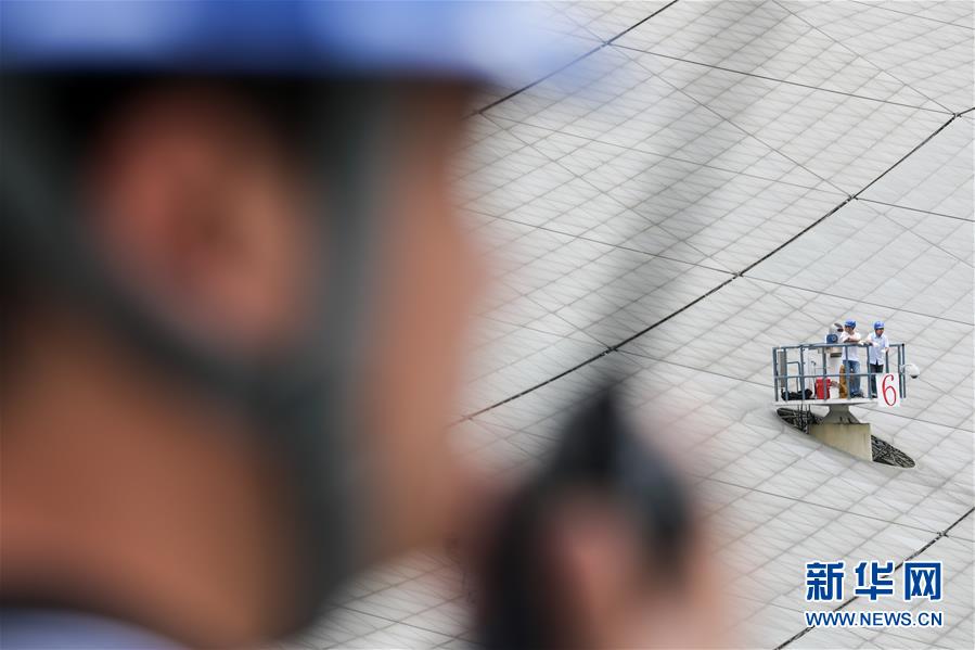 8月28日,工作人員在對(duì)FAST進(jìn)行檢修。近日,工作人員對(duì)“中國(guó)天眼”進(jìn)行日常維護(hù)和檢修,給“天眼”進(jìn)行全面“體檢”。被譽(yù)為“中國(guó)天眼”的500米口徑球面射電望遠(yuǎn)鏡(FAST)于2016年9月25日落成啟用,即將迎來(lái)落成三周年。新華社記者歐東衢攝