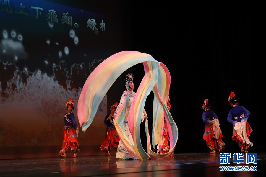 1月11日,在美國休斯敦舉辦的“擁抱春天”晚會上,演員演唱京劇《天女散花》。新華社記者 劉立偉 攝