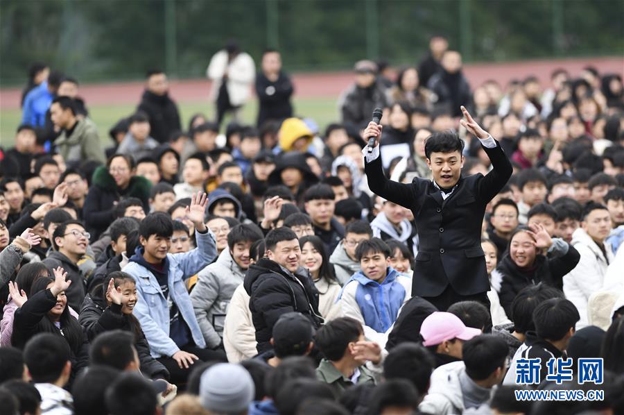 1月15日,中央歌劇院男中音歌唱家王藝清在慰問演出中與觀眾互動。 當(dāng)日,“我們的中國夢”——文化進萬家中央歌劇院文藝小分隊來到重慶市石柱土家族自治縣第一職業(yè)學(xué)校進行慰問演出,為學(xué)校的三千多名師生帶來了一場精彩的音樂大餐。 新華社記者 王全超 攝