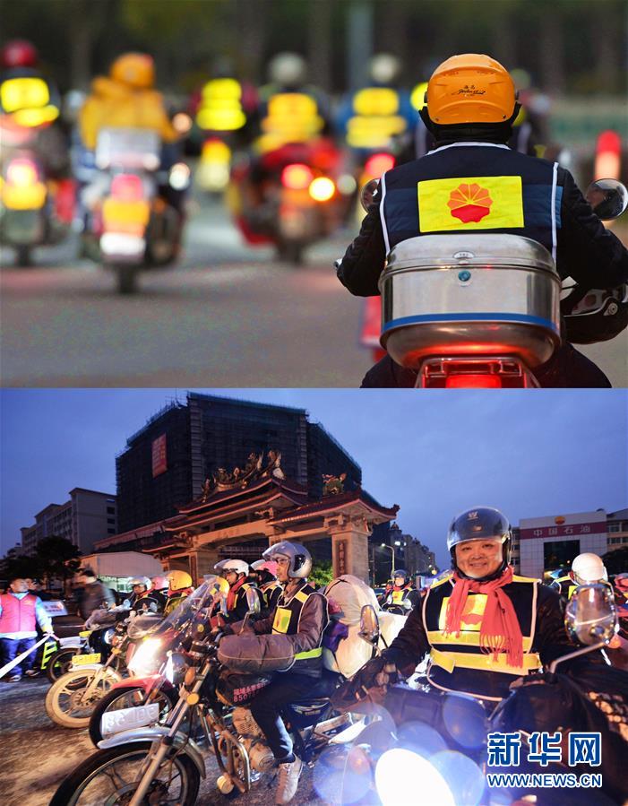 當(dāng)日,首批198輛摩托車、268人從福建省泉州、廈門、漳州等地出發(fā),踏上回家之旅。為方便這支摩托大軍,從1月15日至23日,中石油啟動(dòng)連續(xù)第9年的“溫暖回家路·鐵騎返鄉(xiāng)”公益行動(dòng),開放福建、江西兩地35座加油站,為返鄉(xiāng)鐵騎提供免費(fèi)加油、交通反光背心、姜湯熱茶和地圖等一系列愛心幫助。