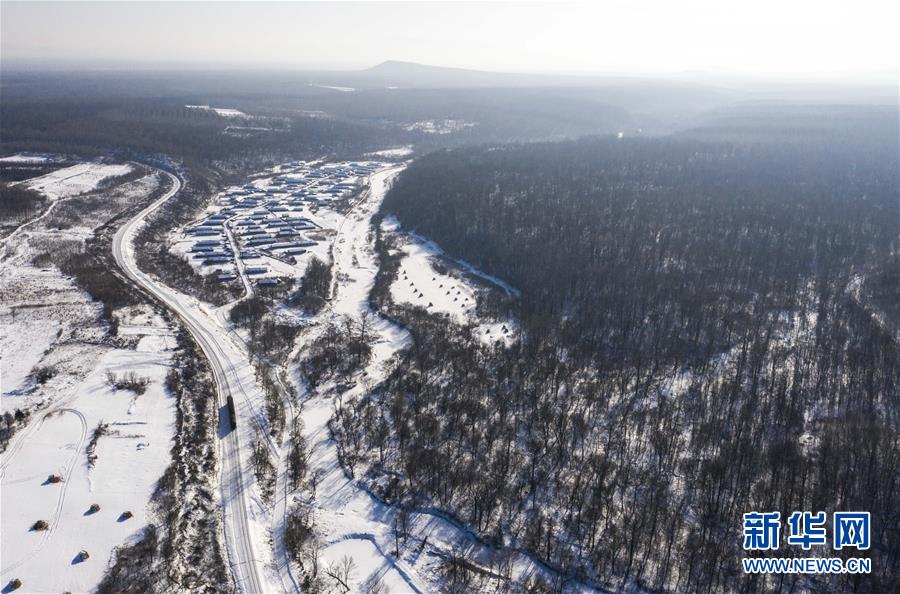 “送水小火車”行駛在林海間,前往送水地點(diǎn)(1月17日攝,無人機(jī)照片)。新華社記者 許暢 攝