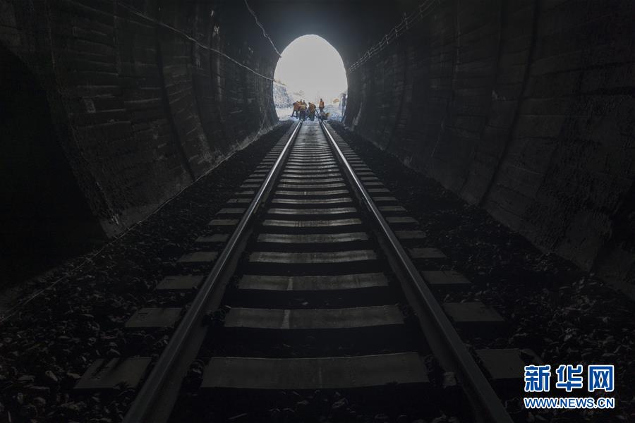 1月6日,在加格達(dá)奇工務(wù)段西羅奇嶺二號隧道,西羅奇維修工隊工作人員進(jìn)行維修作業(yè)。新華社記者才揚(yáng)攝
