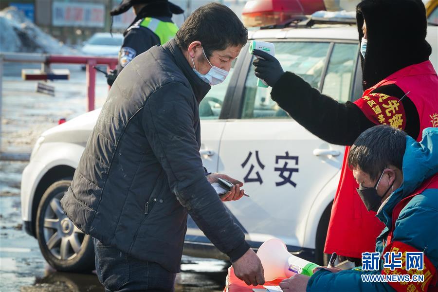 2月24日,工作人員在哈同高速公路哈爾濱收費(fèi)站為車輛人員登記、測(cè)體溫。 新華社記者 王松 攝