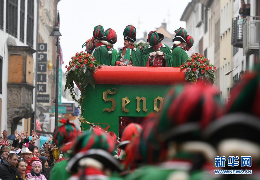 2月24日,在德國科隆,人們參加“玫瑰星期一”大游行。新華社記者 逯陽 攝
