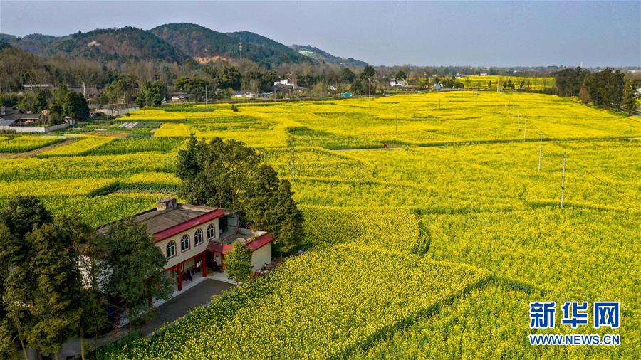 2月25日在四川省崇州市拍攝的油菜花田(無(wú)人機(jī)照片)。 新華社記者 王曦 攝