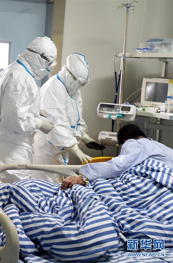 西藏自治區(qū)第三人民醫(yī)院醫(yī)生治療新冠肺炎確診患者(2月1日攝)。新華社記者覺果攝