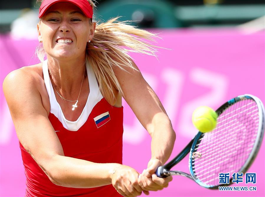 圖為2012年8月4日,莎拉波娃在倫敦奧運會網(wǎng)球女單決賽中回球。最終,她以0比2不敵美國選手小威廉姆斯,獲得亞軍。 新華社記者陳建力攝
