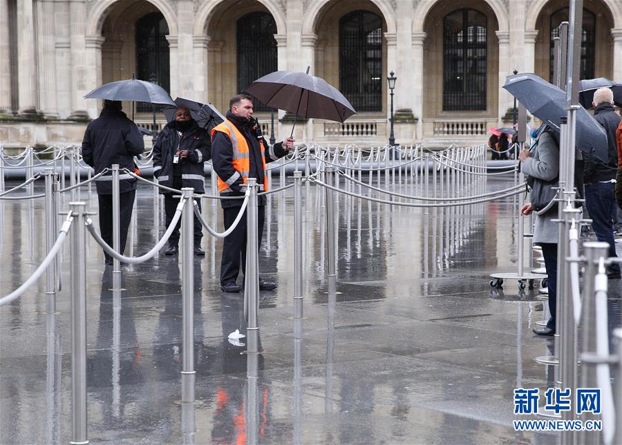 3月2日,在法國(guó)巴黎,人們?cè)诒R浮宮外了解開館信息。新華社記者 高靜 攝