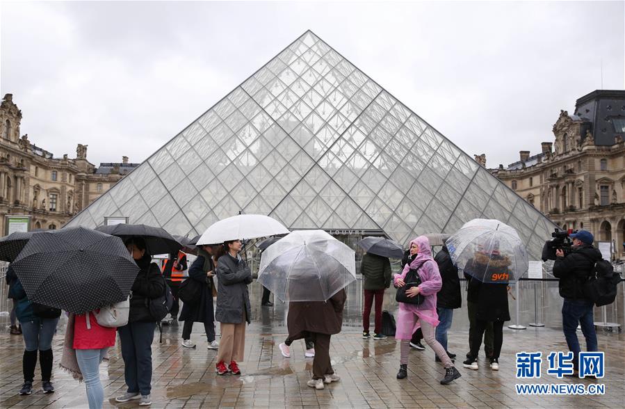 3月2日,在法國(guó)巴黎,游客撐傘走過(guò)盧浮宮的玻璃金字塔。新華社記者 高靜 攝