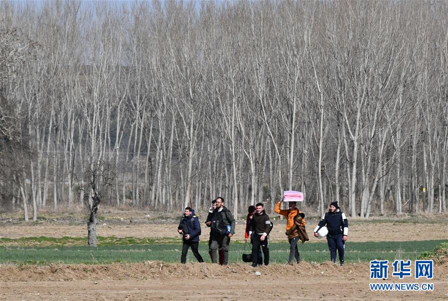 3月3日,在土耳其埃迪爾內(nèi)省,非法移民走向土耳其歐盟邊界。土耳其從上周開始放松與歐盟成員國希臘和保加利亞邊界的管控,目前有大量非法移民聚集在土耳其西北部的埃迪爾內(nèi)省靠近土耳其歐盟邊界的地方,試圖從這里進(jìn)入歐盟國家。新華社記者徐速繪攝