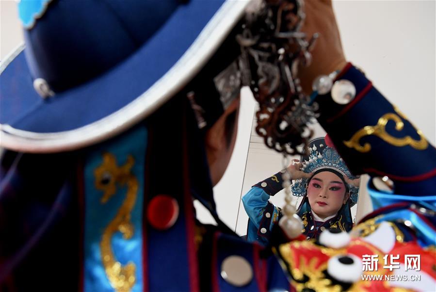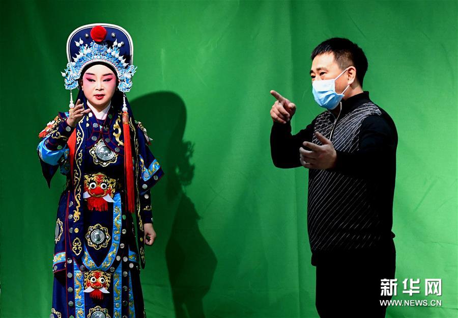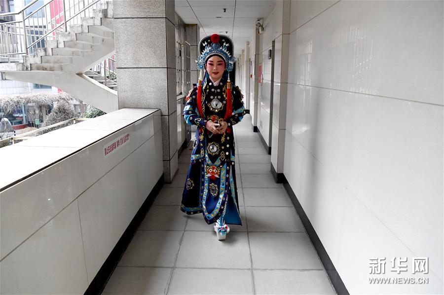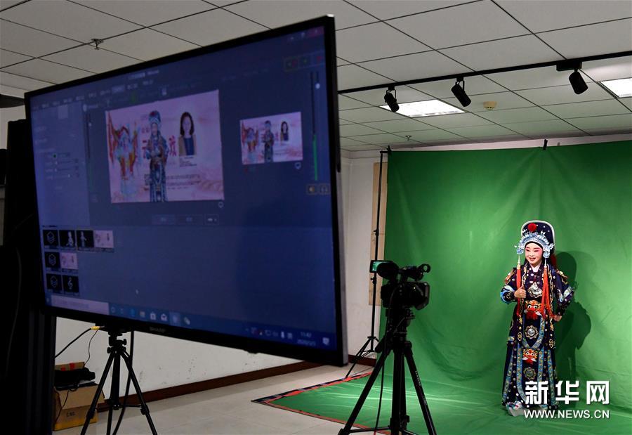 3月3日,李金玲在鄭州文化館通過直播的形式進(jìn)行帶妝表演豫劇《花木蘭》選段。李金玲是鄭州工程技術(shù)學(xué)院音樂舞蹈學(xué)院的教授,也是豫劇常派弟子。14歲開始學(xué)習(xí)豫劇的她師從豫劇大師常香玉的次女陳小香。多年來,除了本職工作教學(xué)外,她還作為文化志愿者,到各地義務(wù)表演、授課,致力于豫劇的傳承與發(fā)展。疫情防控期間,鄭州文化館展開線上文藝戰(zhàn)“疫”,開通網(wǎng)絡(luò)直播平臺(tái),李金玲也作為志愿者走進(jìn)“直播間”,進(jìn)行帶妝表演和教學(xué),精彩的“云”上表演吸引了不少戲迷的關(guān)注?!霸谶@個(gè)特殊時(shí)期,通過直播的形式為大家表演,希望可以讓更多的人喜歡和了解豫劇,感受它獨(dú)特的魅力?!崩罱鹆嵴f。新華社記者 李安 攝