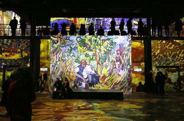 2月27日,在法國(guó)巴黎,人們?cè)凇稄哪?、雷諾阿到夏加爾:地中海之旅》光影藝術(shù)沉浸展的媒體預(yù)展上參觀。新華社記者高靜攝