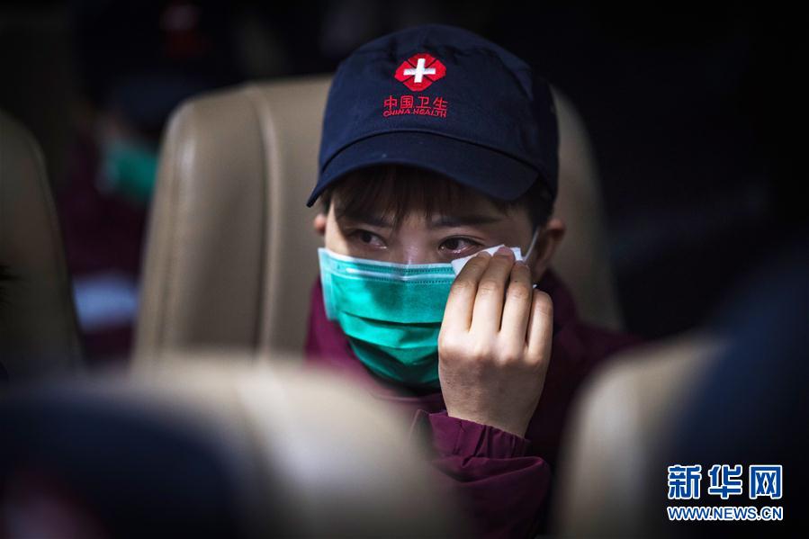 3月17日,陜西國家緊急醫(yī)學救援隊隊員閔渝婷在返程途中擦拭眼淚。新華社記者肖藝九攝