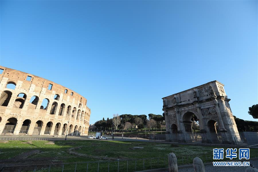 3月16日,在意大利首都羅馬,斗獸場因疫情關閉。新華社記者程婷婷攝