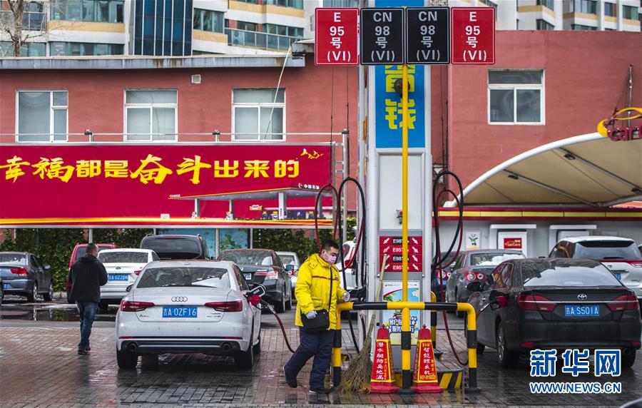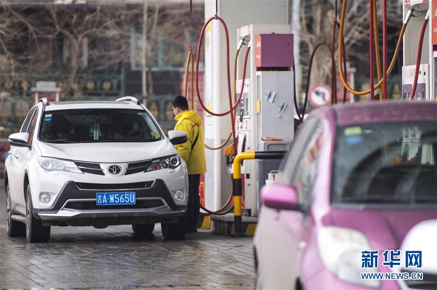 3月17日,吉林省長春市一處加油站工作人員為車輛加油。  國家發(fā)展改革委17日宣布,近日國際市場油價持續(xù)下跌,按照現(xiàn)行成品油價格形成機(jī)制,自2020年3月17日24時起,國內(nèi)汽油、柴油價格每噸分別降低1015元和975元。折合每升價格下調(diào)約8角。此次調(diào)價已至每桶40美元調(diào)控下限,即俗稱的“地板價”,低于40美元部分不再下調(diào)。新華社記者 許暢 攝