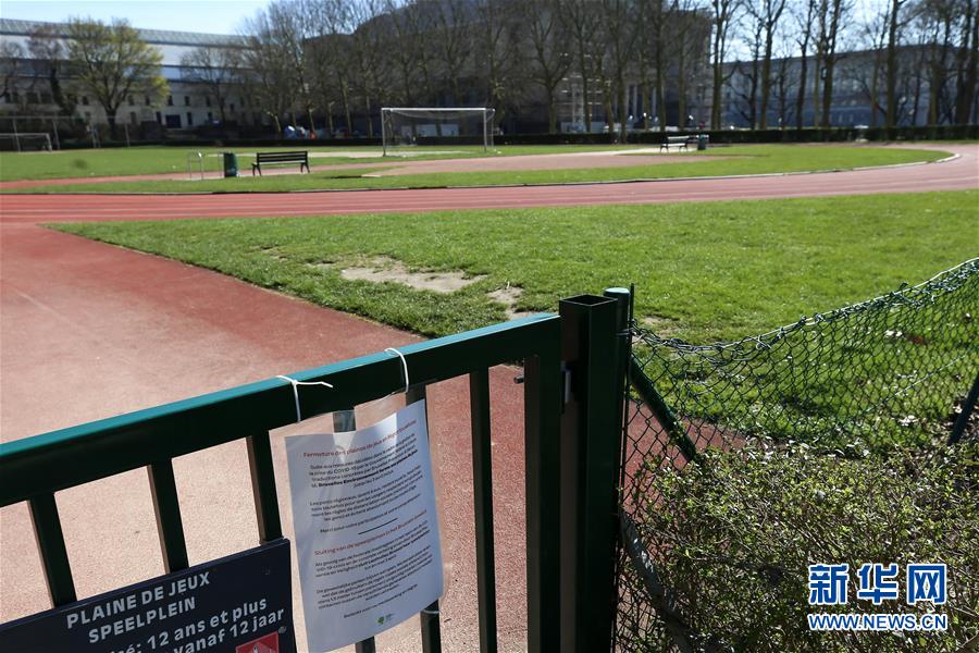 這是3月18日在比利時布魯塞爾拍攝的一處關閉的運動場。 新華社記者 張鋮 攝