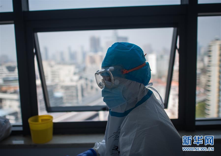 3月19日,在武漢市肺科醫(yī)院隔離病房,醫(yī)護人員在窗邊小憩。 新華社記者 肖藝九 攝