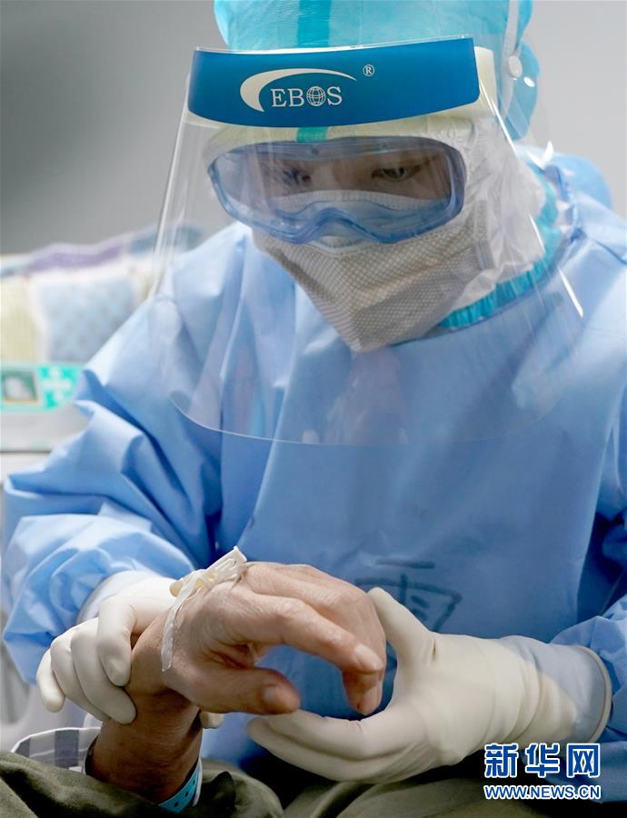 90后護士文雯在進(jìn)行輸液前檢查留置針情況(3月20日攝)。 武漢火神山醫(yī)院重癥醫(yī)學(xué)一科的護理團隊共50名護士,其中絕大多數(shù)是80后、90后女性,她們不懼危險,奮戰(zhàn)在抗擊疫情的最前沿“紅區(qū)”。 新華社記者王毓國攝