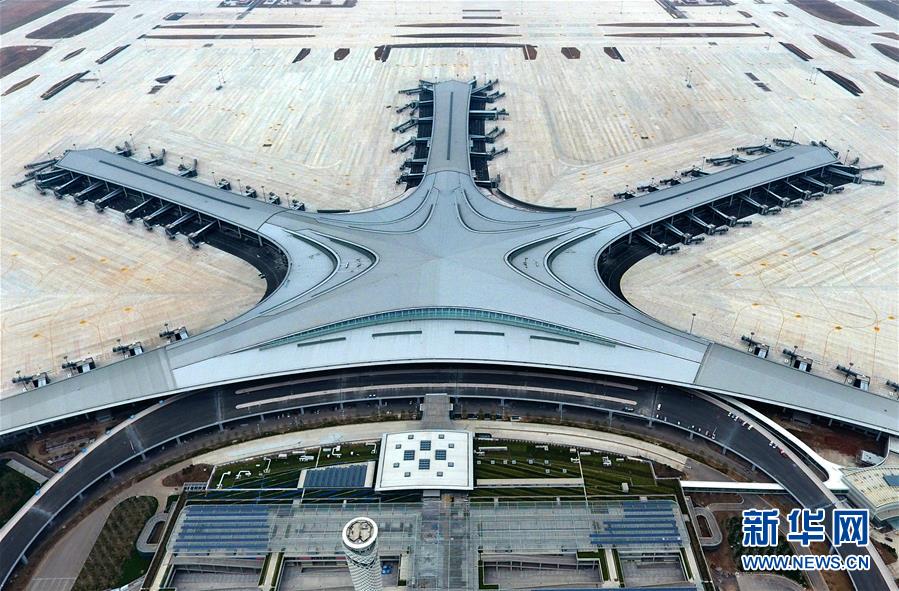 2019年6月12日無人機(jī)拍攝的建設(shè)中的青島膠東國際機(jī)場。新華社記者李紫恒攝